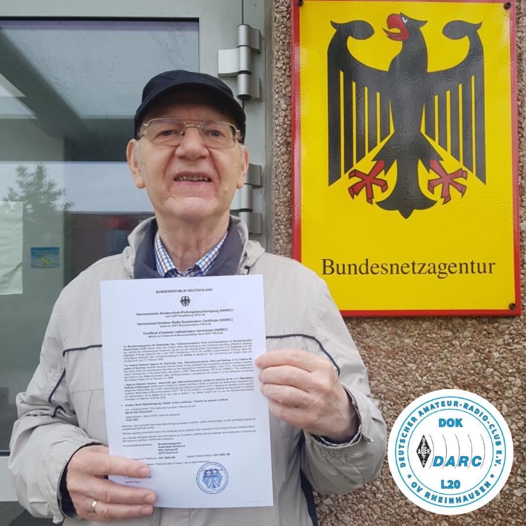 Erst vor einem Monat bestand unser Mitglied Bernd DO5BKD die Amateurfunkprüfung der Klasse E. Am 12.05.23 trat er erneut bei der Bundesnetzagentur in Dortmund an, um die Prüfung der Klasse A abzulegen. Mit Erfolg!