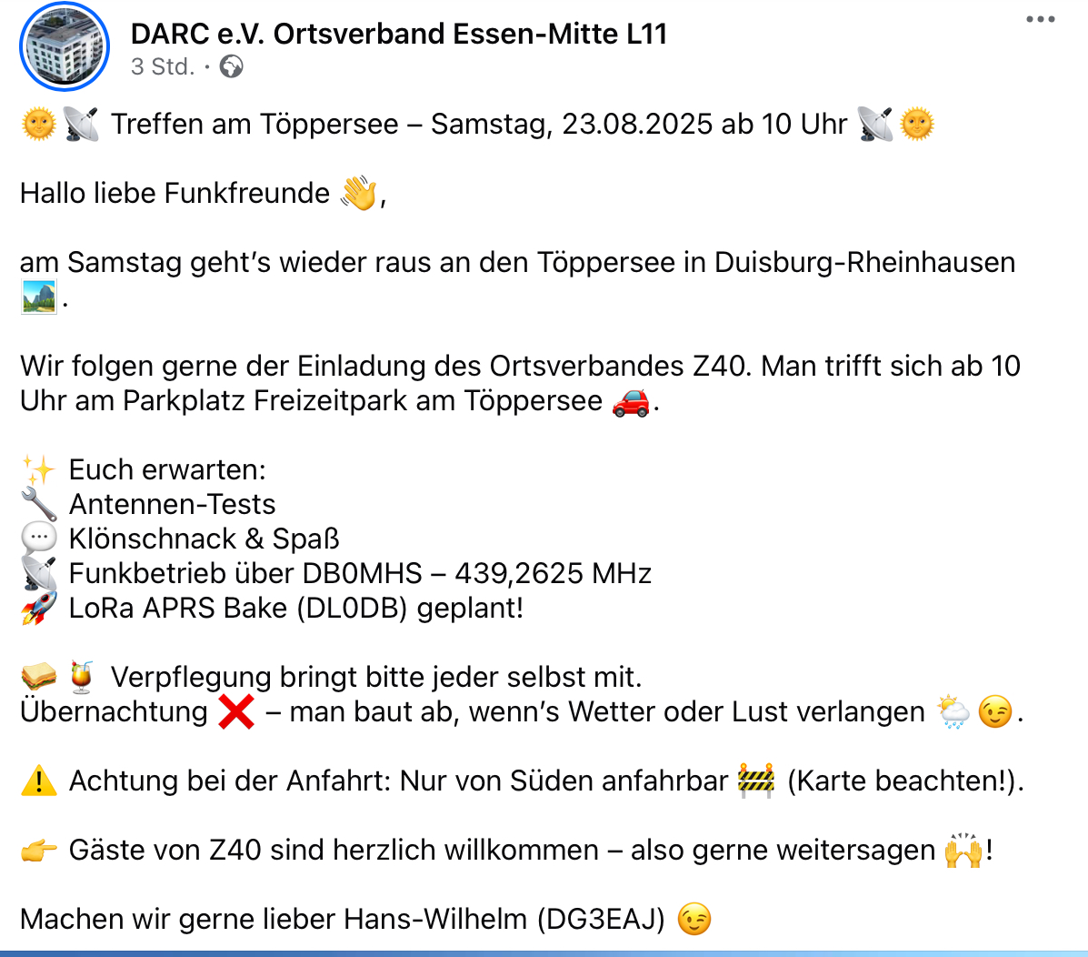 Der VfdB Ortsverband Z40 lädt wieder ein zur Outdoor Aktivität an der Tegge (oberer Töppersee) in Rheinhausen.