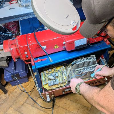 Unser Mitglied Christian DO3CL ersetzt während unseres Donnerstagstreffs in unserer Funkstation einen defekten Sicherungshalter im Netzteil einer Endstufe.