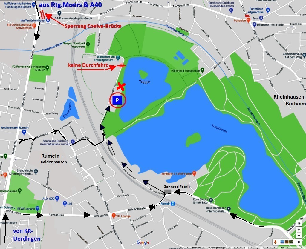 Für das Navi: Parkplatz "Kleiner Toeppersee" (Tegge) , 47239 Duisburg-Rumeln Kaldenhausen (südlich der Wasserski-Anlage gelegen)